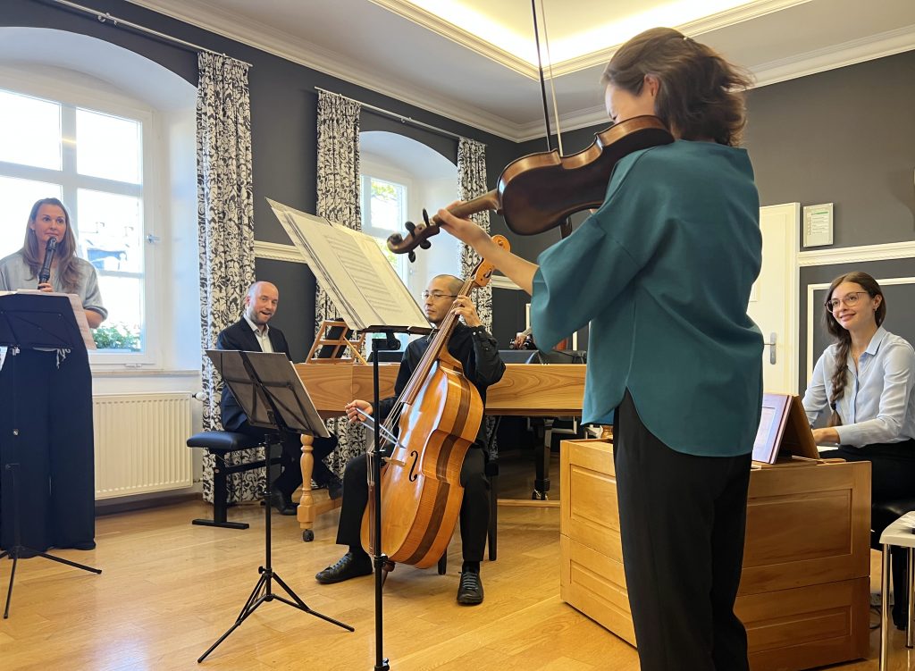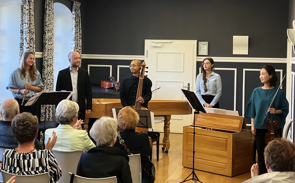 Die nicht nur in Hochfranken sehr geschätzte HofCapelle beendete am 14. September 2025 um 17:00 Uhr die diesjährigen Rehauer Kulturtage. Das Alte-Musik-Ensmble der Extraklasse, bestehend aus Silvia Müller (Blockflöte), Wakana Nishimura (Barockvioline), Soshi Nishimura (Gambe und Violone), Dorothea Weser (Orgel) und Christoph Dittmar (Cembalo), begeisterte wie gewohnt seine Zuhörer mit beeindruckender Brillianz, Spielfreude, spannenden Konzepten und ausgewählten Stücken: ihr Konzertprogramm „La Follia d’amore – Zwischen Liebe und Wahnsinn“ bot Werke, die mit dem ursprünglichen Volkstanz durch verschiedene Liebesformen in Verbindung stehen. Übermütige Verrücktheit, ausgelassener Wahnsinn, zarte Melancholie und tiefer Schmerz variierten in der affektreichen Musik des 17. und 18. Jahrhunderts und einer Welt voller Leidenschaft und Emotionen. Kompositionen von Diego Ortiz, Heinrich I. F. Biber oder auch Antonio Vivaldi erfüllten den Festsaal im Alten Rathaus. Das Publikum war absolut begeistert. Ein besonderer Dank gehr an die Stadt Rehau für deren Unterstützung. Eine Veranstaltung des Tonkünstlerverbandes Hochfranken e.V.! Dieses Konzert wurde ermöglicht durch den Tonkünstlerverband Bayern e.V. aus dem Förderpaket FREIE KUNST des Bayerischen Staatsministeriums für Wissenschaft und Kunst.