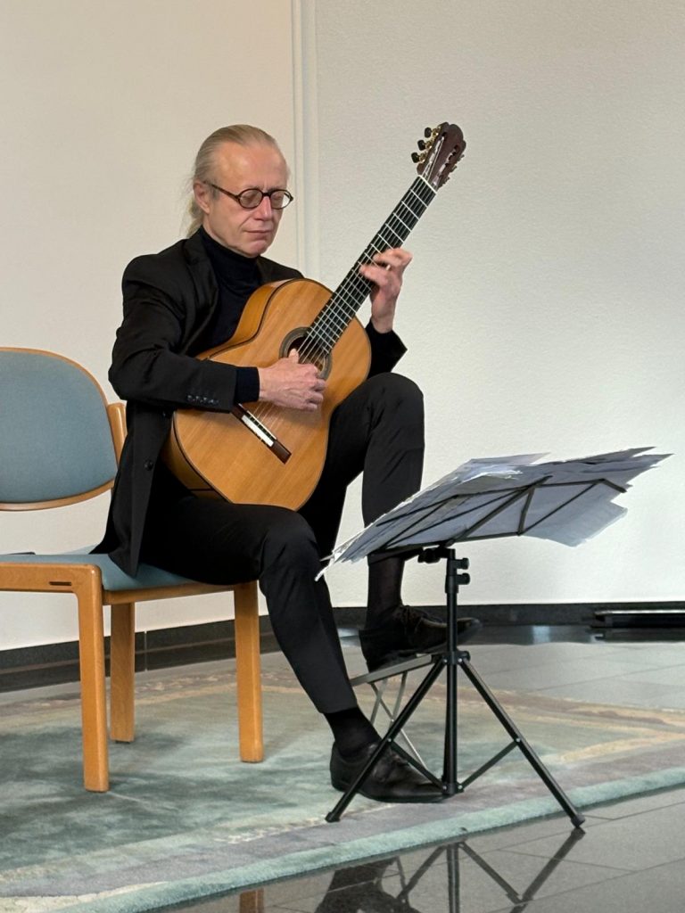 Mit seinem Programm ‚La Guitarra – Von Bach bis Flamenco‚ war Wolfgang Mayer am 28. September 2025 zu Gast in Dietmar Ungeranks Hofer Konzertreihe „Gitarrenhighlights„. Damit reihte er sich ein in eine Liste beeindruckender musikalischer Gäste. Der deutsche Gitarrist brachte in der Freikirche der Siebenten-Tags-Adventisten (Lessingstraße 30, Hof) Kompositionen von Johann Sebastian Bach, Niccolo Paganini, Joaquin Rodrigo u.v.a. zu Gehör – eine musikalische Reise durch drei Jahrhunderte. Dietmar Ungerank , Konzertorganisator und Leiter der Gitarrenschule „Freunde der Gitarre“ in Hof, bedankte sich nach der Veranstaltung herzlich bei seinem Gast.
