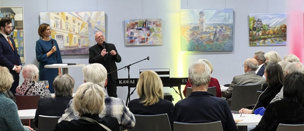 Am 05. Dezember 2025 luden die Hofer Symphoniker zum Festkonzert! Unter der Leitung von Chefdirigent Martijn Dendievel feierte das Orchester seinen 80jährigen Geburtstag und es erklangen Werke von Peggy Glanville-Hicks, Ludwig van Beethoven und dem TKV-Mitglied Dr. Wolfram Graf! Auch dabei war der Starbratscher Nils Mönkemeyer. In einer Konzerteinführung um 18:30 Uhr im oberen Festsaalfoyer erhielten die Zuschauer von Susanne Bieler und Dr. Wolfram Graf interessante Einblicke in das Konzertprogramm, denn für dieses Festkonzert hatten die Hofer Symphoniker eine Komposition von Graf in Auftrag gegeben. Der „Hymnus“, der an diesem Abend uraufgeführt wurde, hat – so die Hofer Symphoniker – „…festlichen Charakter und verarbeitet die Tonbuchstaben H (für H-ofer) und Es (S-ymphoniker) in einem signalartigen Motiv.“ Wir freuten uns sehr über die große, gegenseitige Ehrung von Orchester und Komponist.