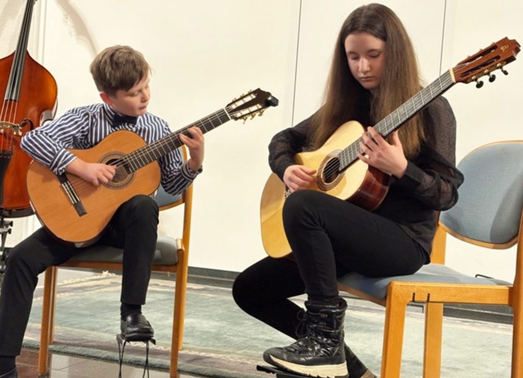 Dietmar Ungeranks Gitarrenschule „Freunde der Gitarre“ hat am 18.01.2026 um 17:00 Uhr ihr erstes Schülerkonzert im neuen Jahr veranstaltet. Für das sonntägliche Konzert stand einmal mehr der Saal der Freikirche der Siebenten-Tags-Adventisten in Hof zur Verfügung. Die meisten Darbietungen erklangen auch von den eigenen Schülern Ungeranks, aber es waren auch Gäste zu hören. Für Samia Cantalpinar, Rahel Wohlleben, Conrad Leander Jahn und Ilja Gebert war dieses Konzert gleichzeitig eine Vorbereitung für die Wettbewerbe „Jugend-musiziert“ (Regionalwettbewerb Hochfranken) in Selb und den bundesweiten „Roland-Zimmer“ Gitarrenwettbewerb in Pirna. Elisabeth Frank, und Finnja Stelzer bereicherten das Konzert mit weiteren Beiträgen.