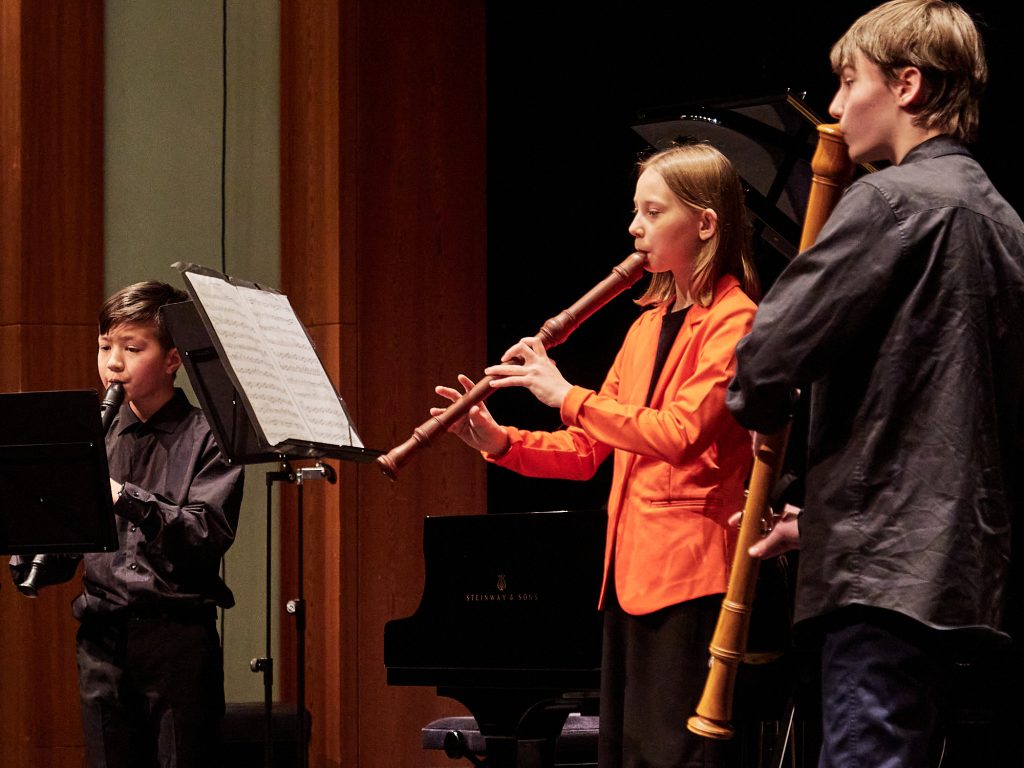 Denn in diesem Jahr beeindruckte den Verband besonders dieses hervorragend aufeinander eingespielte Ensemble: Sophia Elin Knechtel, Ilian Takuro Shestiperov und Martin Kreissl erspielten sich mit Werken für drei Blockflöten von James Hook, Sören Sieg und Agnes Dorwath die Höchstpunktzahl von 25 Punkten. Das innige, perfekte Instrumentalspiel aller drei Ensemblemitglieder unabhängig voneinander fiel MItgliedern des Tonkünstlerverbandes Hochfranken schon in den Vorjahren auf und machte sie früh auf die jungen Künstler aufmerksam. Noch mehr beeindruckten sie dieses Jahr in Kombination – mit einem makellosen Vortrag. Es war ein großes Vergnügen, dem jungen Ensemble zuzuhören und bei den musikalischen Interaktionen zuzuschauen. Der ‚Florestan und Eusebius-Preis‚ 2026 ging an das Blockflötenensemble aus Sophia Elin Knechtel, Ilian Takuro Shestiperov undMartin Kreissl. Herzlichen Glückwunsch den drei großartigen Musikern, ihrer Pädagogin sowie den Eltern und Wegbereitern. Alles Gute auf Eurem weiteren musikalischen Lebensweg!