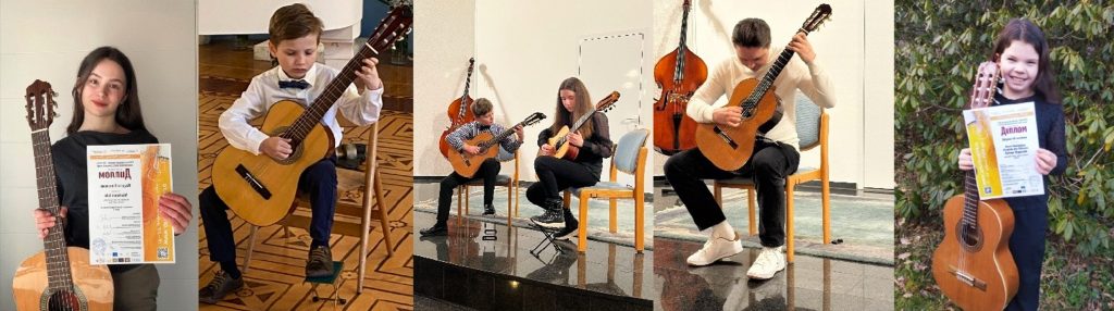 Jule Wirtelorz, Conrad Jahn, Ilja Gebert & Samia Catalpinar, Daniel Schreivogel und Rahel Wohlleben (Fotos: Dietmar Ungerank / Ewa Margareta Cyran / Gitarrenschule ‚Freunde der Gitarre‘)