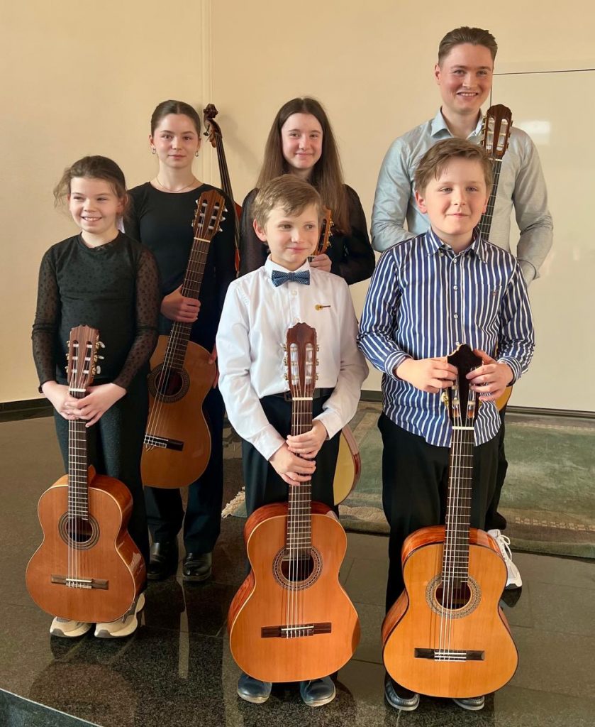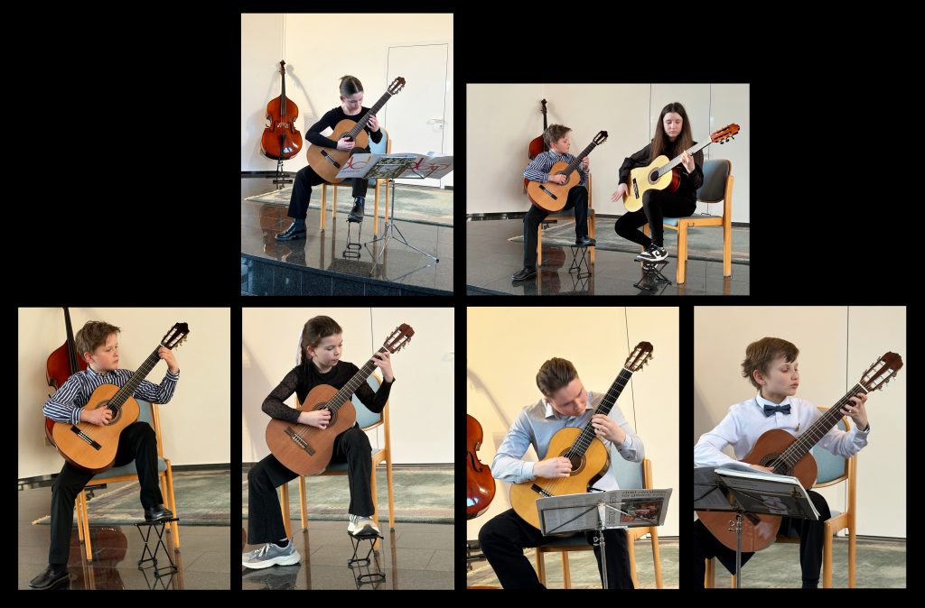 Die jungen Gitarristinnen und Gitarristen Jule Wirtelorz, Conrad Jahn, Ilja Gebert & Samia Catalpinar, Daniel Schreivogel und Rahel Wohlleben sind alle Preisträger nationaler und internationaler Wettbewerbe und kommen aus unserer Region. Sie nehmen Unterricht bei Dietmar Ungerank oder Ewa Margareta Cyran und haben in den letzten Jahren schon häufig auf sich aufmerksam gemacht. Daniel Schreivogel ist sogar zweifacher „Florestan und Eusebius-Preisträger„. Sie alle spielten nun im vergangenen Jubiläums-Gitarrenhighlight – dem 20. Konzert dieser Reihe und dem zweiten in diesem Jahr. Los ging es am Sonntag, dem 22. März um 17:00 Uhr. Damit gaben die jungen Musiker der internationalen Reihe ein wunderbares Jubiläum und zeigten einmal mehr auf, dass die Welt der Gitarre in Hof einen festen und besonderen Platz hat. Das Konzert unter der Leitung von Dietmar Ungerank fand in der Freikirche der Siebenten-Tags-Adventisten in der Lessingstraße 30 in Hof statt, der Eintritt war dieses Mal frei. Für Rahel Wohlleben, Jule Wirtelorz, Ilja Gebert und Conrad Jahn war es auch eine Vorbereitung auf einen weiteren, noch anstehenden Wettbewerb: den Roland-Zimmer-Wettbewerb in Pirna an Sachsens östlicher Landesgrenze. Dieser findet noch im April statt und wir drücken die Daumen! Allen Schülerinnen und Schülern, ihren Lehrerinnen und Lehrern sowie den Eltern weiter gutes Durchhalten und Alles Gute!