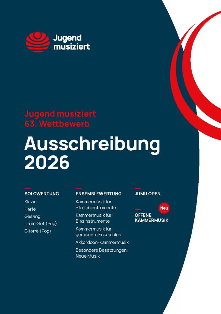 „Jugend musiziert“ 2026: Vom 31. Januar bis 1. Februar 2026 messen sich talentierte junge Musikerinnen und Musiker innerhalb des 63. Regionalwettbewerbs „Jugend musiziert“ Hochfranken 2026 in Selb miteinander. Zum Abschluss präsentieren sich die Siegerinnen und Sieger noch einmal im Preisträgerkonzert mit Preisverleihung durch den Schirmherrn und Oberbürgermeister der Stadt Selb, Herrn Uli Pötzsch und einem Vertreter des Vorstandes der Sparkasse Hochfranken am Sonntag, 1. Februar 2026, um 17 Uhr im Rosenthal-Theater in Selb. Dort dürfte es auch zur Verleihung des Florestan uns Eusebius-Preises 2026 innerhalb des Preisträgerkonzertes durch den 1. Vorsitzenden Markus Jung kommen.